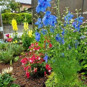 サカタのタネ メドレーの花壇 よく咲くスミレ レモネード が最後の一咲 ペチュニアのビューティカルが パールワイト、レッドメイプル、フレンチバニラ、シナモン と並んでて見えてないところにボルドーがとってもきれい 雨が降る事を考えると断然鉢植えなのですが、鉢が増えすぎると管理できないので半分を花壇に地植え I hope this flower will bloom for a long time.