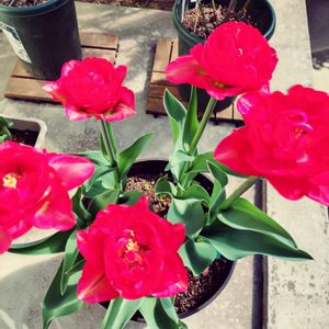 2024年11月初旬 球根植付け後、 3ヶ月近くうんともすんともなくって やっと出てきたら早いのね 思った以上にきれいな色で絵みたい 昨日2つ、今日で3つ咲いてる