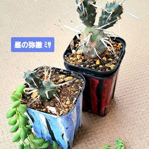 ゲオメトリクス兄弟 1️⃣ 少し前にお迎えした憧れの ゲオメトリクス 早く積み上がって欲しいなあ 2️⃣ 道の駅の園芸屋さんに居た 長刺武蔵野 800円 かなり頑丈な棘なのかと思ったら ストローの様な触感の棘だった かなり積み上がっているから、一節もいで、保険株作っとこうかな どちらも大きくなあれ