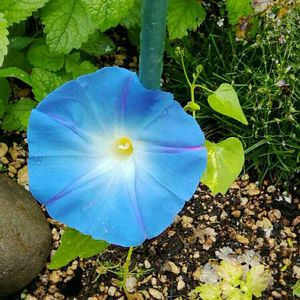 8/17(金)③ ✾今朝は、いつもの紫色1輪と、このブルーの朝顔が咲いていました。ニューフェイスです。 ✾いい色ですね♫より涼しげな薄いブルーになったkeiさんの朝顔も最初はこんな色でしたよね? ✾組んだネットから外れて斜面にツルが伸びていたので、直してあげました。お水をあげていたマンションの先輩のマダムに感謝されました🤗♫