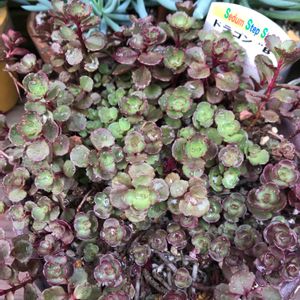 🍫チョコレート色っぽい 🍂ドラゴンズブラッド セダム属 気になっていたけど、買うの初めて😁 コーカサスキリンソウ(スプリウム)の選抜品種で葉色はより深い銅赤色 ホームセンターでカリカリになる寸前でした。 育て方は、キリンソウなので乾燥に強く、挿し木で簡単に増えると思います 半木立で、下部は木ぽくなります。紅葉🍁見たい。