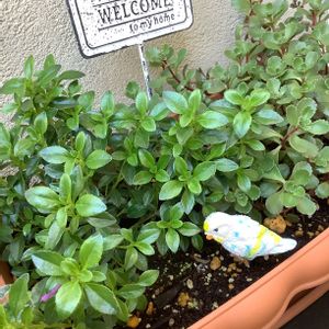 ミンティアとセダムたぶんドラゴンズブラッド。🌱 ミンティアは触るとミントのいい香り。ドラゴンズブラッドは香りはないものの、手触りがいい。弾力があって、プニっとしています。触って癒されるコーナーです。これで花が咲いたら、言うことなし。😄 あら、pic見ていて気がついた。😅紫の花が一つ咲いていました。💜