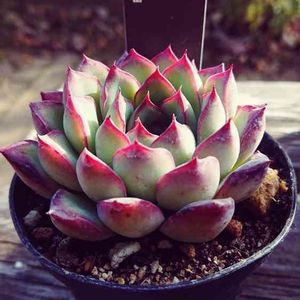 トロピカルガーデンさんの福袋から ピンクチップス 今回の中で1番大きく、ずっしりした子✨ 花芽がヘアアクセサリーをつけてるみたいに見える♡ プリドニス(花うらら)とローラの交配種なんだそうです へぇ〜〜 形はローラが強く、赤いエッジや色合いは花うららといったところでしょうか´ᴗ` 今年は交配にチャレンジしたいなぁと思ってます♫