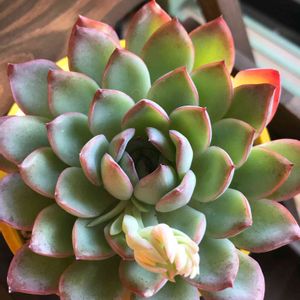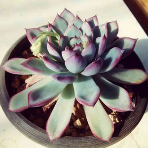 エケベリア、ブリトニス~😄 長野商業高校の長商デパートの植物販売で購入😊🎶🌱🎶 葉先が赤く染まっていて、紅葉してるみたいでキレイです❗