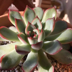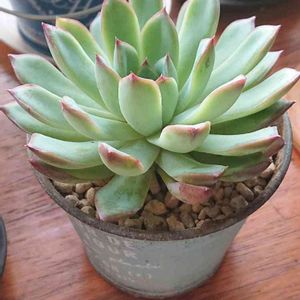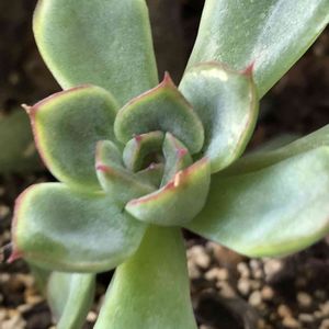 こんにちは。暑過ぎて暑過ぎてクラクラしてましたが、めぐみの雨が降りそうです✨プリドニスさん、下の葉が変色していて、蒸れてる?ジュレなの…?!梅雨明けして元気がなくて心配な子です。明けてからお水をあげてなかったので、一か八か雨が降る前にあげてみました💦この前、別のエケベリアの子がジュレってあっという間にダメにしてしまったので…この時期のエケベリアさん達、悩ましいです😓
