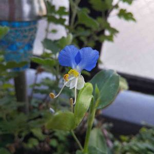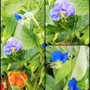 💠ツユクサ…💠 我が家のベランダで毎日違ったお顔見せてくれてます…🤗❣️ (*˘︶˘*).。.:*♡🎆🎶💫💙💦🎡💠💟💙 野草なのに美しいお花やねぇ… 左下…は早く咲いてと願ってます…オシロイバナ…何色かな?、、…〜…♥️🤍💛💚 右下…はブルーがきれいなルリマツリ…さん…💠💫…