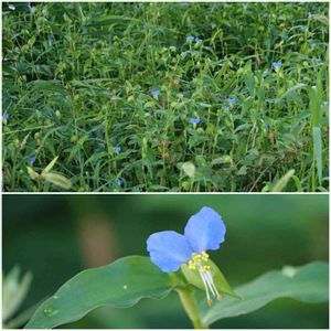 おはようございます(*^^*)♪ 変わったツユクサ発見💙💚 1つ咲いてました✨ 花弁少し縮れぎみ💦草は同じ露草で大きめ🌿🌱明日も観察してみます🎶