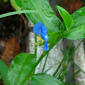 緑道に背を向け雨の中ひっそりと咲いていたツユクサくん💙 君は日々何を思い、そこからどんな景色を見ているの?