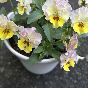 庭のビオラたち🌸 今朝の様子、だいぶ終わりが見えてきたので今のうちに記念撮影です☺️ ①華あられ 徒長しつつもガシッと咲いてくれています✨ ②フィオリーナ 4月に入りもっさりと徒長してきたので4月6日に軽く剪定し、また盛り返してきました ③ルミナリエ ②と同じ日に剪定して、こちらも戻ってきました ④黒ビオラ 寄せ植えに入れているお花、コツコツ咲いてくれます ⑤ミルフル モリモリよく咲いていたのですが、3月末に急に気温上昇で蒸れたのか枯れ込み、強剪定してしまいました。1ヶ月たち、ちょっとだけ咲いてくれています