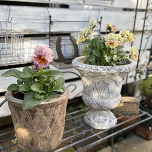 パンジー&ビオラ鉢に植えました♡ 左:松原園芸さん育種フリル咲きパンジー 『アンティークラッフル』 右:桐生ふぁ〜むさんと花日和さんの共同開発品種ビオラ 『アイクルール 』 これから沢山咲いてくれますように♪楽しみです😊