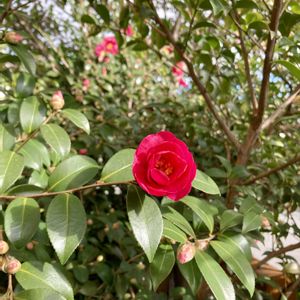 今朝のサザンカ と ビオラ