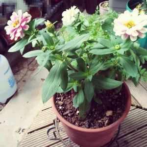ジニア、次々と咲いてきてます☺️ このテラコッタのポットはGS で買ったものです。