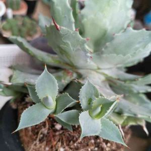 アガベ吉祥冠錦の、子株が大きくなりました。 そろそろ、狭いかな?