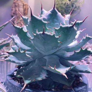 今日のお花のアガベ。 連投しましたが、最後の投稿です。 ここはちっちゃなアガベのコーナー。 アガベポットという名の鉢に植えています。 植え替えしてあげてないので全然大きくなりません笑
