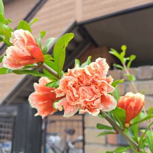 おはようございます😊 ご近所さんの玄関先に咲いているハナザクロ 初めて見ましたが綺麗✨