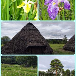 おはようございます☁ 宮城県栗原市ゆり園の近く 山王囲遺跡、縄文時代の 住居復元、あやめ園もありもう散りましたが何本か咲いてました~7/2pic