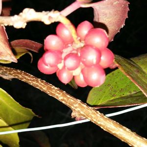 今日のお花の実 念願のサネカズラ(美男葛)紅くて瑞々しい実が美しい💕 数本の苗木をもらい2年目でやっと実ができました 頑張った〜🤗 冬全部カット 春新葉5〜6枚残して摘む 花芽は6月頃新梢の葉元に付く 徒長蔓は伸びたら摘む