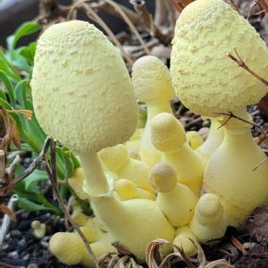 こんにちは😊 本日、2投稿目になります🍄 我が家の花壇より🍄 昨日〜ジャスミンの鉢植え🪴に たまご状🥚のとんがった物が 突然、現れた‼️😳 えっ💦「黄色いキノコ」🍄😓 今朝、覗いて見ると‼️ 昨日のたまご状🥚から円盤状に🛸🍄 傘を広げています☂️ 暫くして(2時間後)様子を見に行くと…円盤状に開いていた傘が少し閉じて来ていますね☂️🍄 コガネキヌカラカサタケ(黄金絹唐傘茸)に特徴、見た目👀はよく似ていますが⁉️ 傘の大きさが8cm〜10cmほど有ります‼️(傘が閉じて来た状態で測ってみた) Googleカメラの検索結果は🔍 🍄コガネキヌカラカサタケ (黄金絹唐傘茸) 🍄全体が鮮黄色の美しいきのこです。 傘や柄の表面は綿くず状の鱗片におおわれ,この鱗片は触ると落ちてしまいます。 やや小型のきゃしゃなきのこで傘の径は5cm未満,幼時は卵形,成長すると円錐形になります。 🍄コガネキヌカラカサタケ(黄金絹唐笠茸)は熱帯地方原産のキノコで、本州では自生していません。 沖縄では夏~秋にかけてよく見られるキノコです。 植え替え後や土を庭や畑に移した後に出現することが多くあります。 幼体が人の形に似ていることから「お釈迦さまのキノコ」とも呼ばれます。 🍄熱帯地方から持ち込まれた腐葉土に混ざった菌から発生することが多い。 GSの皆さんの投稿でコガネキヌカラカサタケ(黄金絹唐傘茸)だと判明しました🍄 🍄•*¨*•.¸¸☆*・🍄•*¨*•.¸¸☆*・🍄