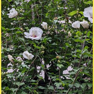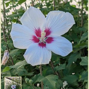 坂道の歩道沿いで見掛けました‼️ 白色のムクゲ 2022年7月24日撮影