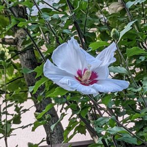 白色のムクゲ 遊歩道沿いのお宅。 2022年7月10日撮影