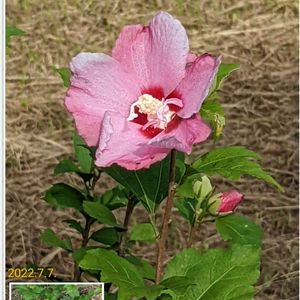 近所で見掛けた ピンク色のムクゲ。 2022年7月21日撮影
