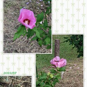 耳原花笠木槿が見られる所。 歩道沿いの花壇にて。 2022年7月18日撮影