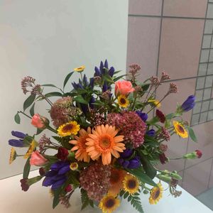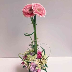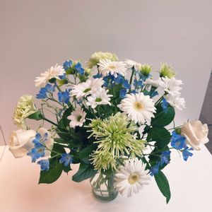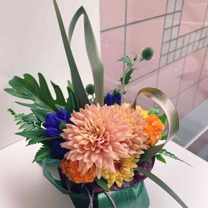 オールラウンドの花瓶生け。 なかなか丸くならず手こずりました😭