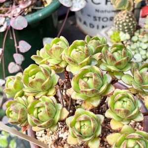 Aeonium 'Arnoldi' アエオニウム・アーノルディ 知らない間に、赤い模様が出てて かっわい〜🫶❤💚 子株出してる?! pic②は、起きたての去年11月19日のpic 比べると、緑1色の無地だったのね💚😑 アーノルディに添えたメンフクロウで 🏷フクロウ祭 🏷幸せを運ぶフクロウ祭り 参加させていただきます(⋆ᴗ͈ˬᴗ͈)”