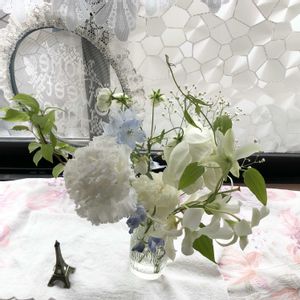 長女の結婚式🎶 テーブルフラワーを頂きました。 純白の花達も長女も綺麗でした(親馬鹿です、すみません)