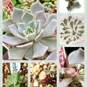 おはようございます☂️ ミックスベリア ❄️雪つぼみ❄️ 中心部分にシミが出来て😔 心配していた 雪つぼみ ↗️ 2020.7.18 虫に食べられたのか? 中心部が真っ黒に😭 泣く泣く胴切りしました ➡️ その時に外した葉っぱ達… 数枚は発根しました ↘️ 2020.8.3 胴切りした茎から赤ちゃんが 6個生まれました🥰 わーい🙌 ⬇️ 2020.8.12 赤ちゃん達が成長しています ↙️ 2020.7.10 に投稿した葉挿し 順調に大きくなっています💕 ↖️ 元気いっぱいだった頃の雪つぼみ❄️ 立派な大きさに成長する迄には かなり時間がかかると思いますが、 これからも雪つぼみ❄️を応援していこうと思っています😊 🏷kuu.雪つぼみ あります☺️