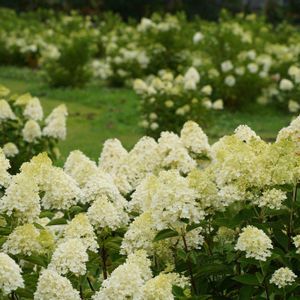 フラワーパークの丘の上には、 こんなにピラミッドアジサイが植えられていました。 アジサイが終わる頃に、この花が花盛りになるのは、嬉しいですね。 秋になったら、ピンク色に染まるといいな。 アナベルと違って 茎がしっかりしていますね。 こんな風に咲いてくれるなら 我が家のピラミッドアジサイも地植えしようかなと思い始めました。 3枚目は、混じって咲いていたノリウツギ。お仲間です。