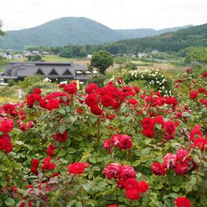 【いばらきフラワーパーク】 ※先週 ①バラ越しの筑波山 ②プリンセスチチブ ③アシュラム ④シャリマー ⑤レストランの卓上装花 テーブルごとに花もデザインも異なって、席選びが楽しい(^^)