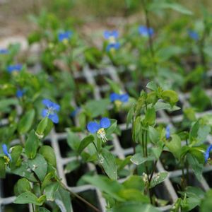 側溝の蓋から飛び出して いっぱい咲いているツユクサ。 何となく可愛く,逞しく・・。 頑張ってますね。🤭