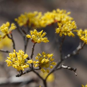 サンシュユの花も満開。 マンサクとサンシュユ、早春の街路樹に欲しい花ですね。春が来た感じがして嬉しい花です。