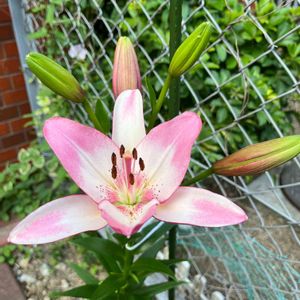 今年 一番に咲いたユリは ロリポップでした🌸 3年目で小さ目だけど可愛く咲いて くれました⸜(*ˊᵕˋ* )⸝