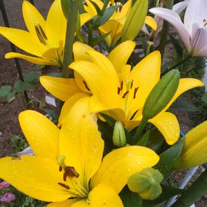 こんにちは😃 今日は、朝から、シトシト☔️ 昨日のpicより スカシユリがよく咲くようになり 他のユリも蕾が大きくなってきました。 スカシユリを含めて、合計4種のユリたち それぞれに、出番を待っています。 次に咲くのは、昨秋、球根を植えたテッポウユリかなぁ… もう1種、テッポウユリと一緒に球根を植えたけど、何だったっけ🤔 3年目のカサブランカは、2メートル近くまでの丈‼️ コレは、もう、花に、手が届かない😓 6月‼️ いよいよ、ユリの季節ですね〜❣️ 楽しみです🎶🎵🎶
