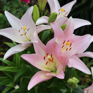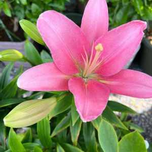 スカシユリ フェアリーリリー(コンパクトリリー) シュガーラブ** 先日アップしたオレンジのスカシユリは、高さが120cm以上あるのですが… こちらは40~50cmとコンパクトサイズ♪ 倒れる心配がないのが良いですね🎵 4年前の秋に球根を購入して 深型のプラ鉢にこれと赤いの(ブザー)を2球ずつ植えたと思うけど… 3回目の開花~楽しみです(*^^*ゞ