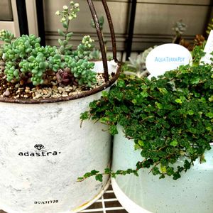 やっと1週間が終わった~💦 毎日暑すぎて 仕事から帰宅後 水やりを1時間ぐらいかけてしてたら クタクタで…...(lll-ω-)チーン そろそろ 雨降って欲しいなぁ~🙏 picはちょっと涼しくなるかなぁっと ベビーティアーズ 天使の涙 プミラ クエルギフォリア 天使のいたずら どちらも天使👼🩷 🏷るる かまぼこ板で繋がる輪