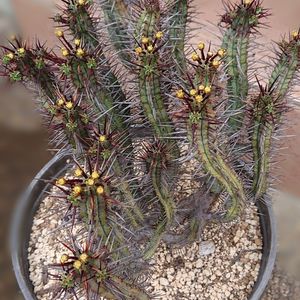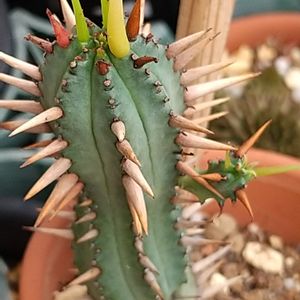 こんばんは╰(*´︶`*)╯♡ またまた33度越え💦 1️⃣ユーフォルビア エノブラ 和名 紅彩閣 かなり背丈が伸びて来ました🌵 この棘トゲに何度痛い目に💦 (c=(c=(c=(c=(゚ロ゚;c=アイタタタ-!! サボテン🌵では無いんだ😅 トウダイグサ科 ユーフォルビア属 2️⃣今日の庭作業は 鉢の整理٩( ᐛ )و 🪴🪴🪴🪴🪴🪴6鉢を綺麗にお掃除🚿 さて〜何を育ててあげようかな🎶