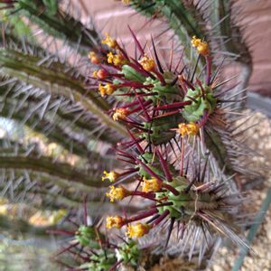 今年も 花が付きました✨ 小さな花が 鋭いトゲトゲに似合わないです(笑)