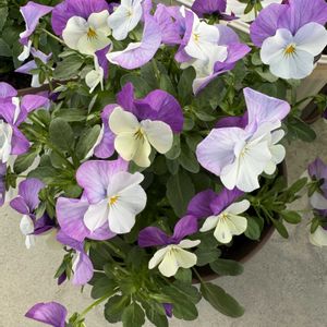 寄せ植え🪴 ① 小輪パンジーわらくアンティーク2色とモクビャッコウのシンプル寄せ植え♪ ②見切品のコニファーブルーエンジ ェルとガーデンシクラメン2色と 夏越しした斑入りアリッサムと見切品のヘデラで寄せ植え♪ ③虹色スミレの寄せ植え 可愛く咲いてます♪