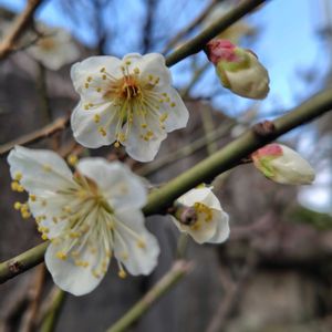 庭の梅の花が咲き始めました🌸 ③椿の蕾も色づいて🌼 上の方は咲いてますが木が大きくなったので撮れませ~ん😅 ④➄虹色スミレも色鮮やかに❗️ 🏷️金曜日の蕾たち 🏷️煌めきの金曜日 に参加します