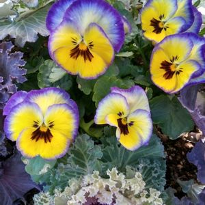 今日は久し振りに暖かくて 寄せ植えのスミレも たくさん咲き揃って 🤳撮ってみました😊 種から育てた小さなハボタンの苗は 何者かに葉っぱを噛られていましたが この寄せ植えのは 何故か無傷でした👌 虫が居なくても 🐦️さんには 気を付けないとです😫