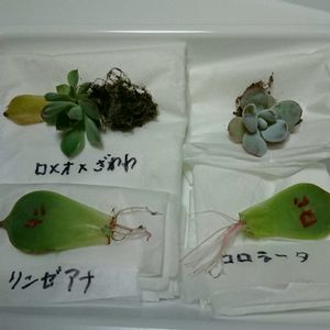 先日、TMさんのプチプレ企画クイズに当選した ロメオ×ざわわ の葉挿しちゃんが昨日到着しました(^^) TMさん実生のラウィや葉挿しのおまけまで盛りだくさん❗ 室内撮りの為、暗い画像になっちゃいましたがどれも可愛くなるであろう風格です。 あとは私の生育環境によるところでしょうが… 頑張ります✊‼ TMさん、今回は素敵な企画ありがとうございました(*^ー^)ノ♪