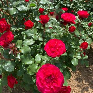 ジークフリート✨ きれいな赤の整った花をたくさんつけてくれます🌹 根も枝もよく成長するので、狭い我が家の鉢植えでは窮屈そうですf(^^;、