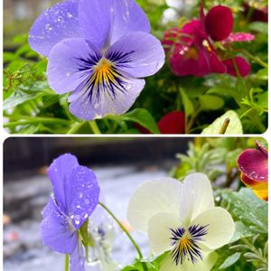ビオラちゃん、ひとつひとつが可愛くて💓( ๑ㆆ ㆆ)じー ①1つの苗から白とブルーのお花。蕾は白いので、白からブルーに色変するのかな? ②③④玄関アプローチの鉢が寂しかったので、もう1つお迎えしたバニーちゃんと寄せ植えに入れてるビオラとパンジー ⑤葉っぱが好き🥰