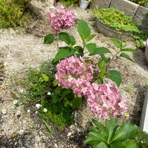ピンクのアナベルちゃん❣️ お友達に枝貰って刺し技しました😊 去年は植木鉢で、花は1つやったかなぁ〜 今年地植えしました✌️ 可愛い😍