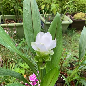 クルクマが咲き出しました。色々な種類が有るんですね。以前UP済みのものとは種類が違います❗️我が家で3種類目のクルクマ達です😃