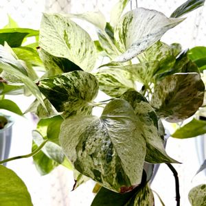 ポトス テルノグレース🌱⋆。 白ベースに緑色がマーブル状に入る羅紗葉が特長💕 あ そうそう この前 市場に行ったのよ🐟🦀 ワタシの前に1組対応中だったのね そしたら市場のオバチャン なんて言ったと思う❓ 「ちょっと待ってね! お嬢ちゃん😊」 へ❓ お… お…… ………お嬢ちゃん⁉️ この4?歳の立派な中年女に お嬢ちゃん‼️🤣 いや 実年齢よりも若く見られがちなんだけれども それにしても奥さんでもなく お姉さんでもなく お嬢ちゃんって🤣🤣🤣 なんだか複雑な気持ちになったのである…😳
