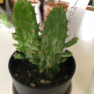 【オプンチア属 マーベリック】 Opuntia monacantha 'Maverick' Opuntia monacantha f. monstrosa variegata Opuntia tuna f. monstrosa 'Marverick' Opuntia tuna f. monstrosa 'Hydra' 実家の塀の隅っこで、瀕死状態で 転がっていたサボテンを発見🏡 不憫さ故に持ち帰りました🚑 次の日、このサボテンの夢を… 「どうか私を植え替えてほしい」と 🌵が涙ながらに訴えていて、 目覚めてビックリ ( ゚д゚)ハッ! 植物に意思がある夢を見たのは 生まれてこの方、初めてでした 消えかけていたネームタグは、 【マーベリック】🏷 単刺団扇 O. monacantha の綴化、 よ〜く見ると斑も入ってました DAISOでは【珊瑚樹】の🏷で、 間違って売られているそうです 実家のこのマーベリックは、 ネームタグや鉢の様子から 100均産ではなさそう 「ウチワサボテンの仲間で、いわゆる石化 ツナと言う品種の石化株にマーベリックと言う通称がつけられている もしかしたら最近はマーベリックよりもヒュドラと言う和名のほうが一般的なのかも」 ☆Source☆ 【多肉道 taniku-Way】さん https://kamemushi01.at.webry.info/201408/article_9.html